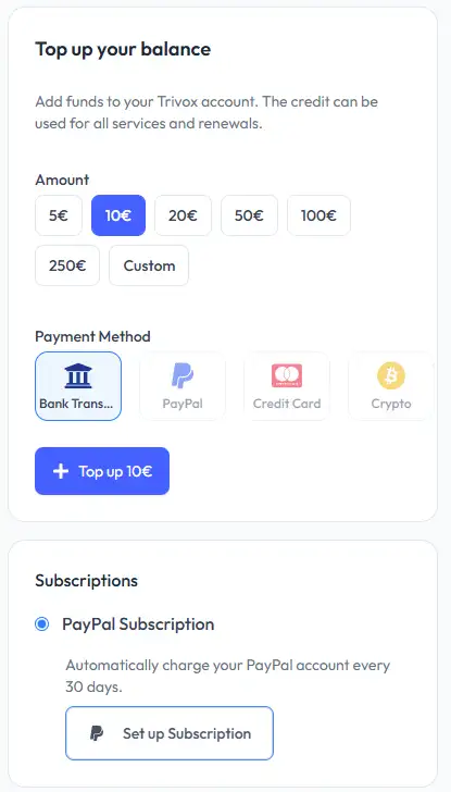 Credit card payment stands as the most globally utilized method in e-commerce. Using a credit card allows you to securely add funds with us.